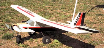 to good effect. No installation details I am afraid. To the right is a Sig Kadet brought along by Charles Benner. Motor is a larger Astro Cobalt I believe, from the size of the wheels I think it will handle rough ground with ease! |